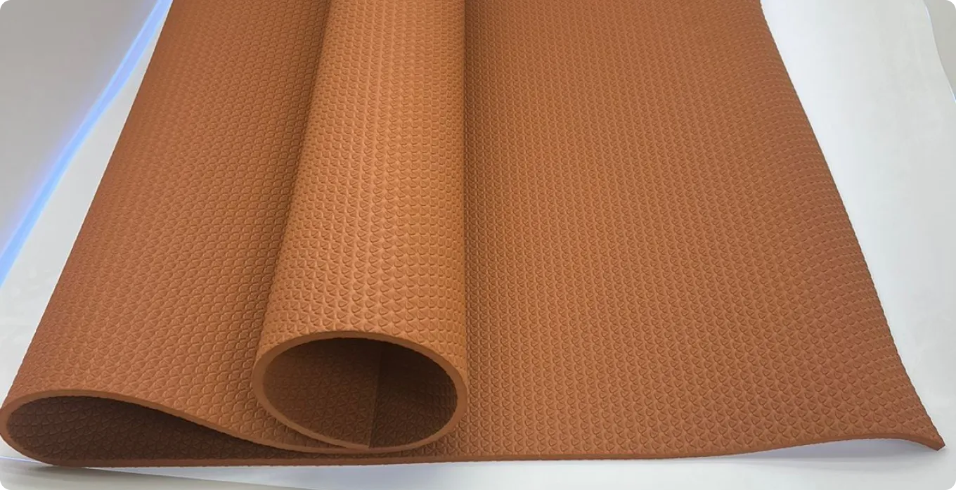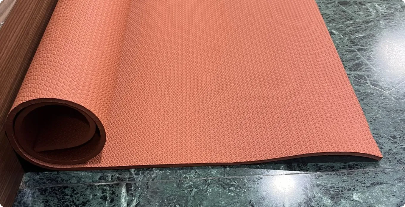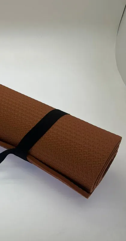 The yoga mat is made with recycled material, fit for indoor and outdoor exercise.