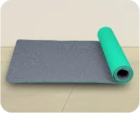 The yoga mat is made with recycled material, fit for indoor and outdoor exercise.