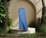 The yoga mat is made with recycled material, fit for indoor and outdoor exercise.